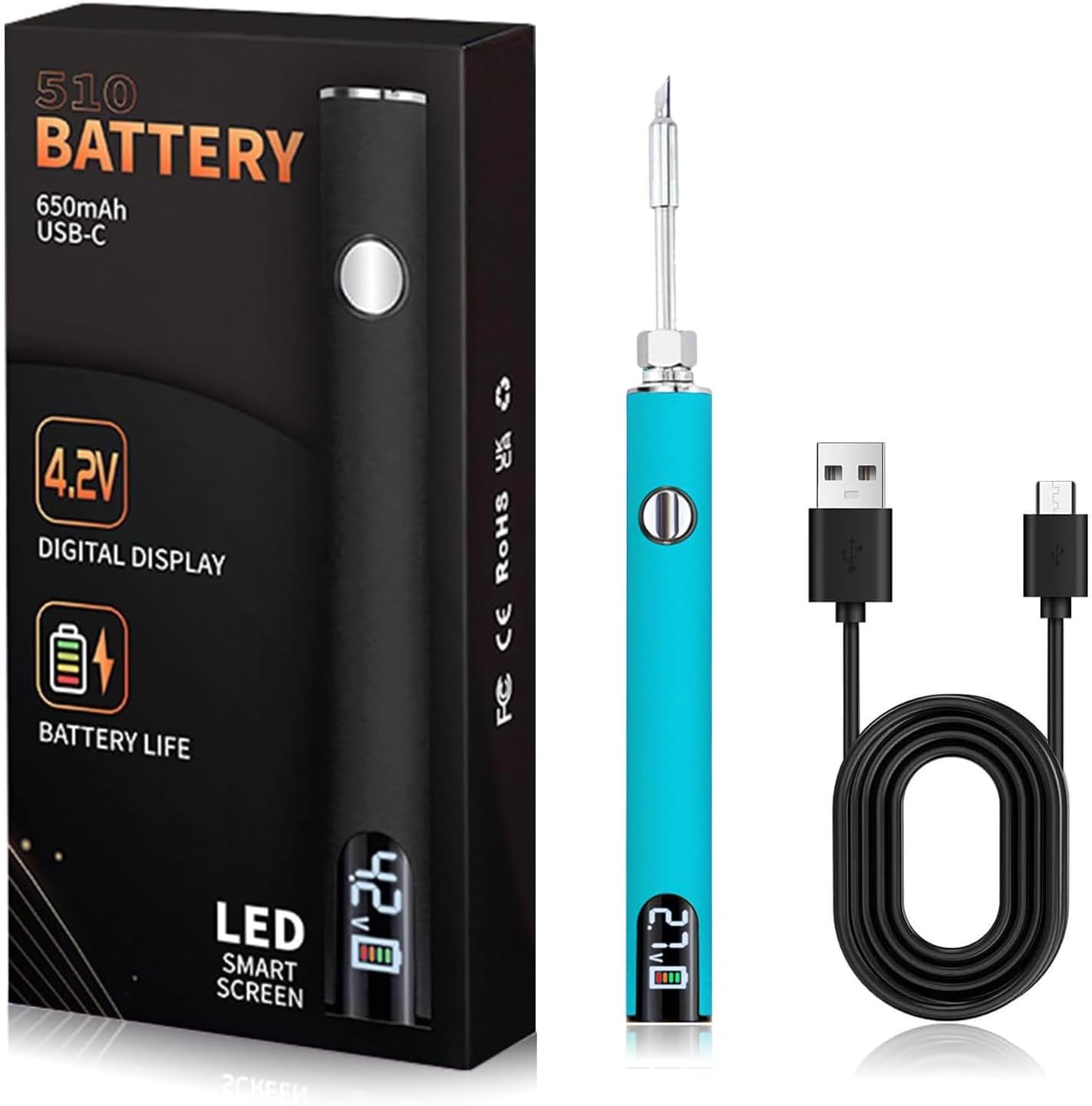510 Thread Battery Cart Pen,650mAh Soldering Iron Kit with LED Digital Display,USB Rechargeable Soldering Pen Adjustable Temperature for Home&Electronics Appliance Repair