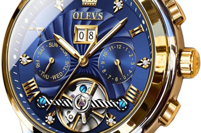 OLEVS Men Automatic Watch Skeleton 5 Hands Mechanical Classic Luxury Multi Calendar Stainless Steel Waterproof Wrist Watch for Men