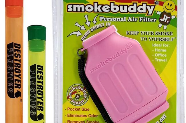 100% Authentic Smoke Buddy Bundled with Two Exclusive Destroyer Plastics Odor Proof Tubes One Large One Small (Smoke Buddy Junior, Pink)