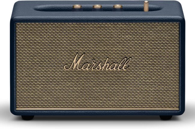Marshall Acton III Bluetooth Home Speaker – Loud Stereo Sound with Bass and Treble Controls | Plug-in Powered | 3.5 mm Aux Input – Midnight Blue