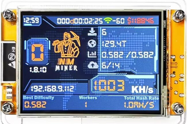 Bitcoin Miner NMMiner ESP-WROOM-32 ESP32 Development Board 2.8 inch Smart Display Lucky Miner Hashrate Module 1010H/s Crypto Solo Lottery Miner