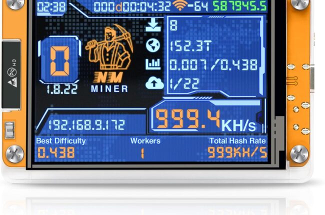 Bitcoin Miner BTC V2 NMMiner – Crypto Miner for ESP32 2.8″ Smart Display Development Board, 1010 H/s Hashrate, Desktop Solo Lucky Miner Bitcoin Mining Machine for Educational Use – Yellow