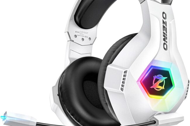 Ozeino Gaming Headset for PC, Ps4, Ps5, Xbox Headset with 7.1 Surround Sound Gaming Headphones with Noise Canceling Mic, LED Light Over Ear Headphones for Switch, Xbox Series X/S, Laptop, Mobile White