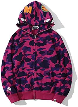 Camouflage shark jacket men’s fall and winter cardigan zipper embroidery hooded sweater large size couple models