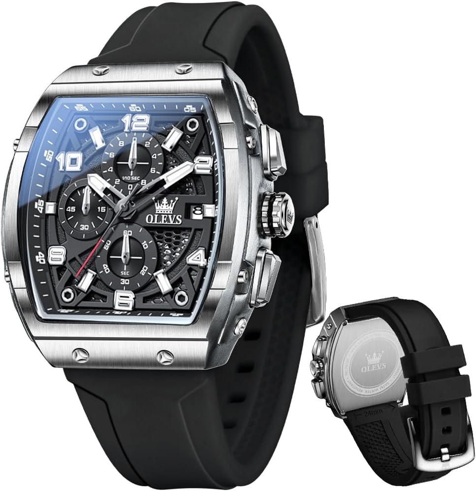OLEVS Mens Watches Stylish Chronograph Waterproof Luminous Silicon Strap Multifunction Watches for Men Business White Men Wrist Watch