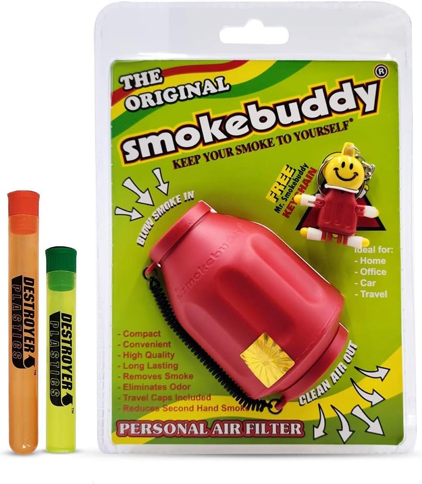 100% Authentic Smoke Buddy Bundled with Two Exclusive Destroyer Plastics Odor Proof Tubes One Large One Small (Smoke Buddy Original, Red)