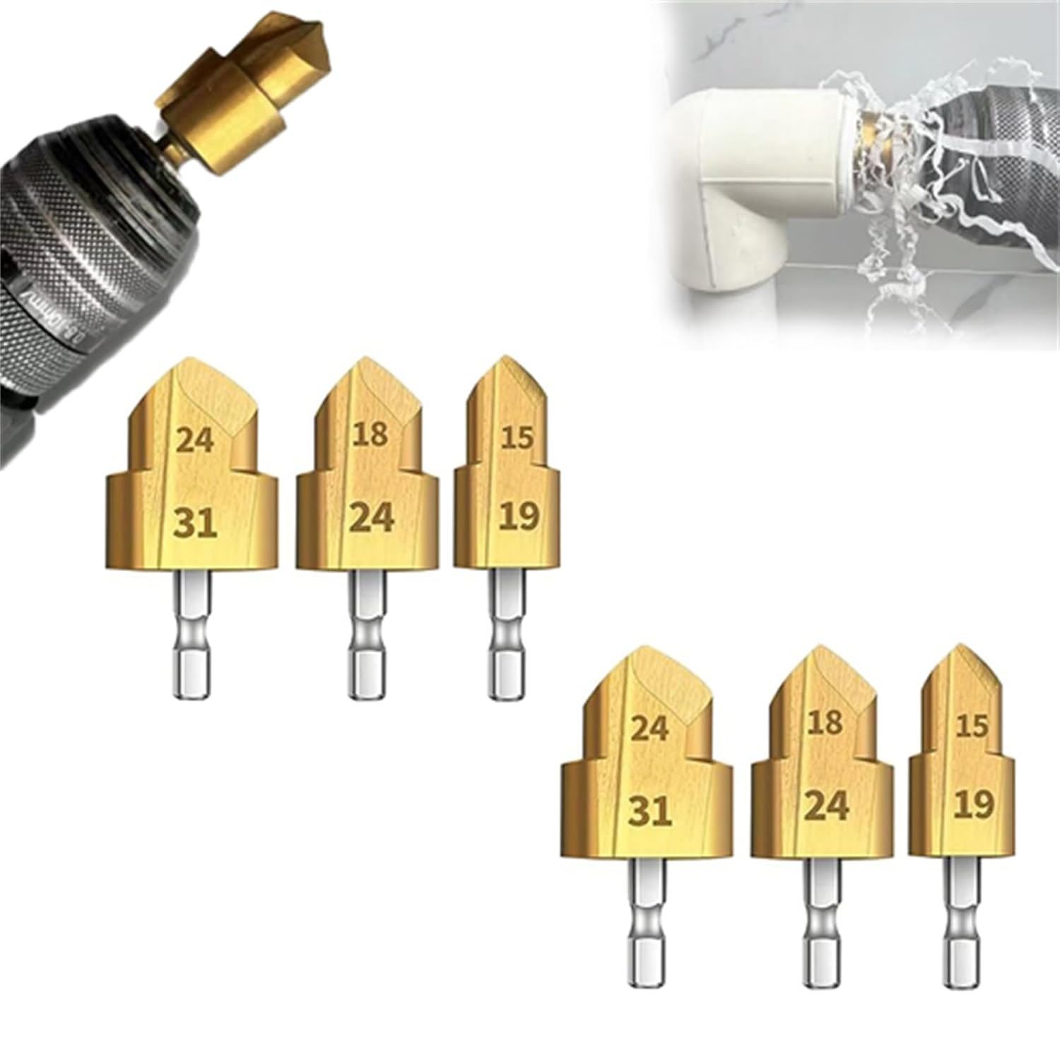 Expansion Repair Drill Bit for PPR Water Pipe, Expansion Repair Drill Bit, 3 Pieces3 Pack PPR Lifting Stepped Drill for Water Pipe Repair, Multifunctional Hexagon Shank (2)