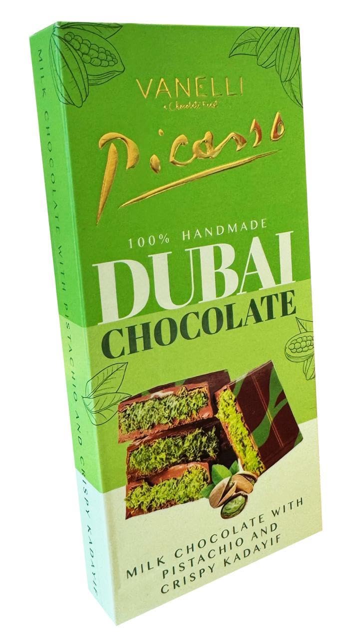 Dubai Chocolate | Picasso 100% Handmade | Pistachio and Crispy Kadayif | Vanelli | Halal Kosher Vegan | 200g 7.05oz