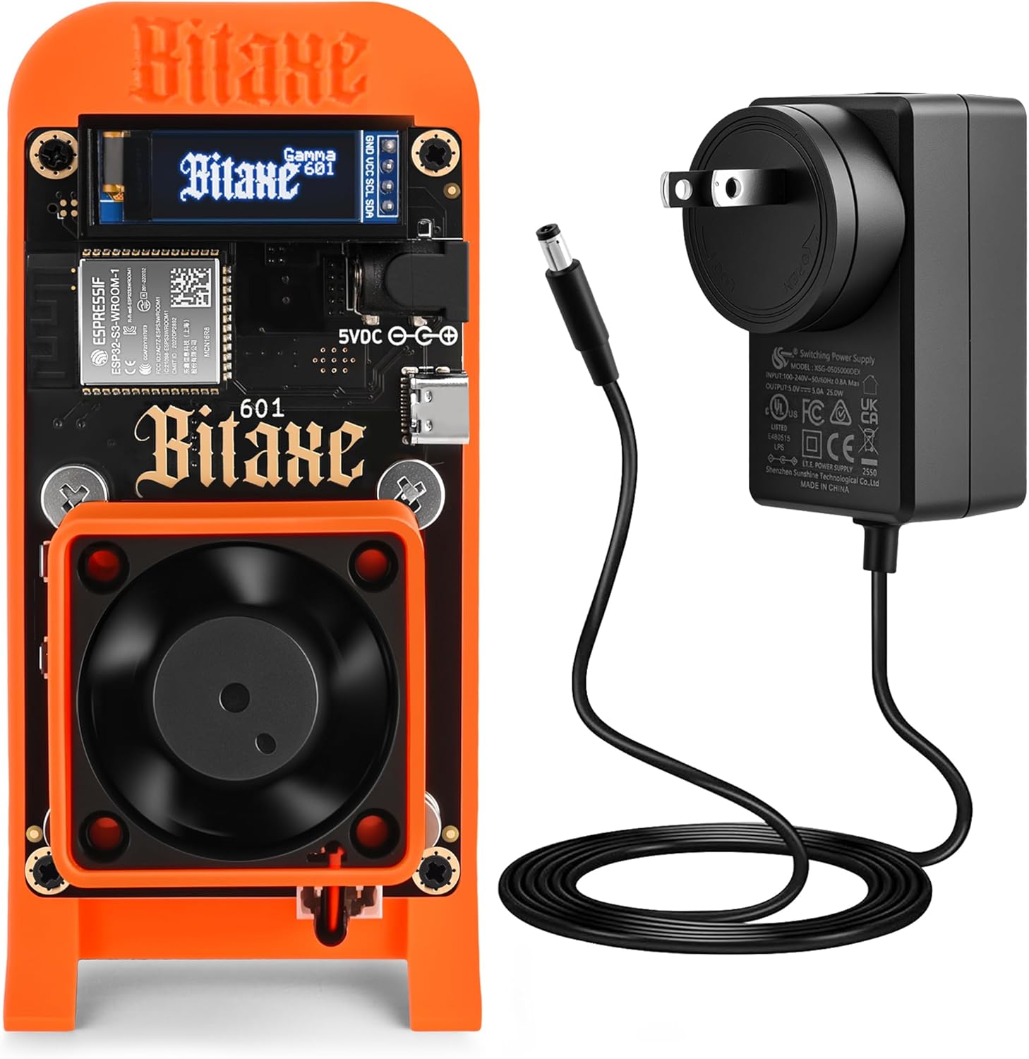 Bitaxe Gamma 601 Bitcoin Miner, Open Source Solo BTC Mining Machine, BM1370 ASIC Chip, 1TH/s – 1.2TH/s SHA-256, 2.4G WiFi, Home Crypto Miner, incl. 5V Power Supply & Stand, AxeOS, Orange https://m.media-amazon.com/images/I/71qT4ENxVRL._AC_SL1500_.jpg