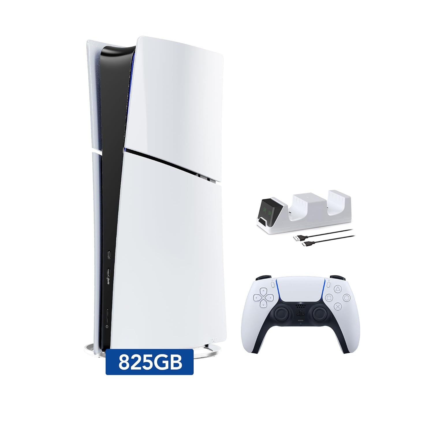 PlayStation 5 Slim Digital Edition Console, Controller and Mytrix Controller Charger – White, Slim PS5 825GB PCIe SSD Gaming Console https://m.media-amazon.com/images/I/61qlc7-rrFL._SL1500_.jpg