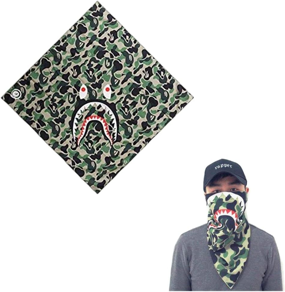 Camouflage Green Shark Versatile Face Mask Shields – Casual Balaclava Headwear- Stretchable Bandana Headbands- Wind/Sun/UV Protection- for Cycling,Motorcycling, Fishing, Hiking, https://m.media-amazon.com/images/I/61RIhGEFJAL._AC_SL1000_.jpg